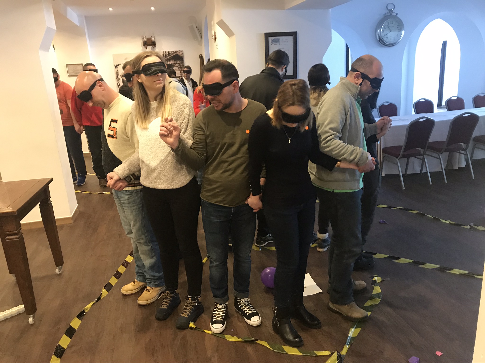 Echipa pe care am intalnit-o de aceasta data era mixta, membrii fiind de varste diferite si din departamente diferite, de la vanzari …pana la marketing. Au ales programul de teambuilding cu ocazia aniversarii de 5 ani a companiei, iar din acest motiv am incercat sa alegem activitatile cele mai de inters pentru participanti. Astfel, am pregatit o zi plina de activitati interactive, diverse concentrate pe imbunatatirea comunicarii intre departamente si totodata am pus accent pe unificarea echipei. Cea mai apreciata activitate din intregul program a fost “circuitul bila” – o activitate in care membrii au trebuit sa construiasca un circuit pentru o bila iar prin aceasta, participantii isi dezvoltau abilitatile de planificare, impartire sarcini, crearea strategiilor pentru atingerea rezultatelor dorite.